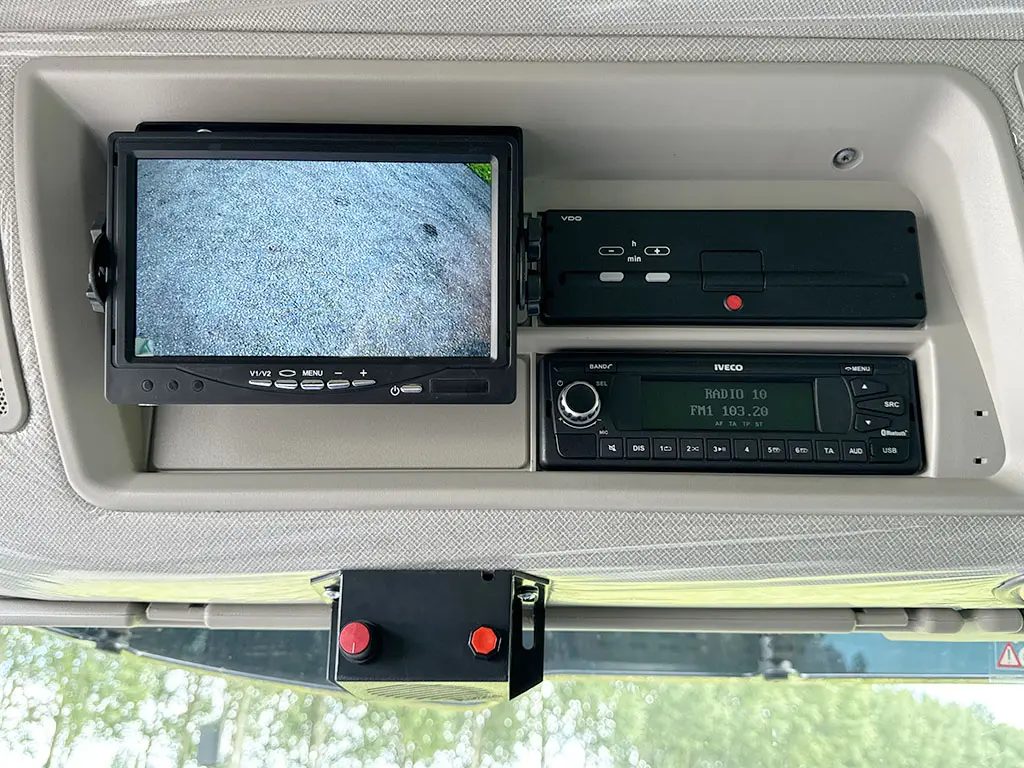 Camera's in crew compartment and rear of the truck with screen in cabin