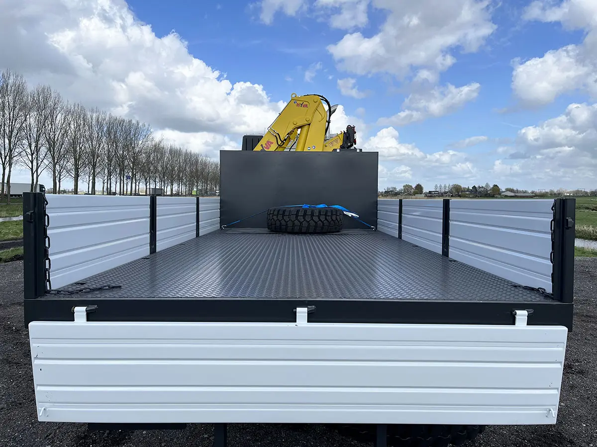 Equipped with Hyva crane and flatbed: