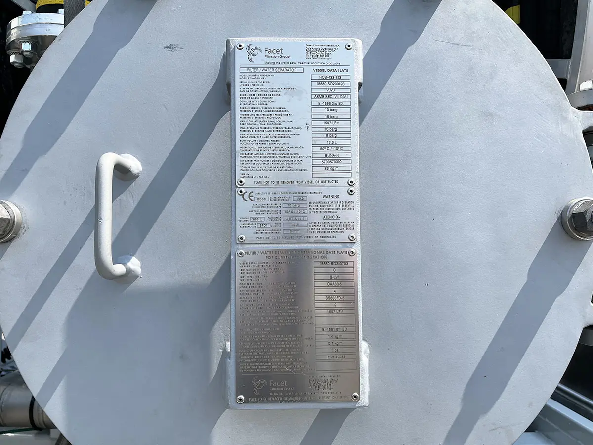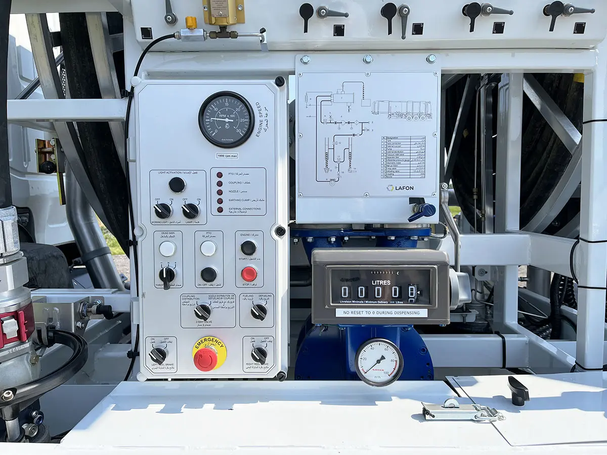 Fueling flow rate: 1300 lpm by coupling, 270 lpm by nozzle.