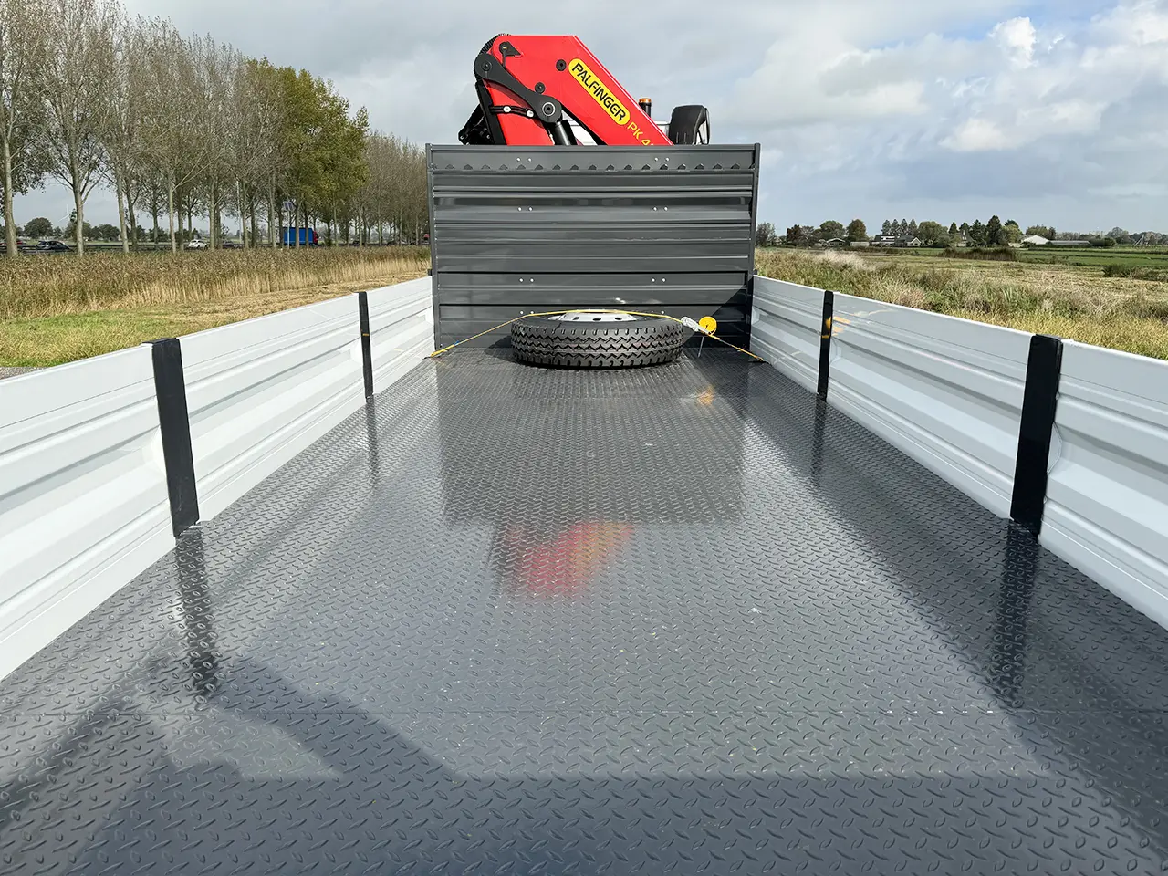 Equipped with Palfinger crane and flatbed:
