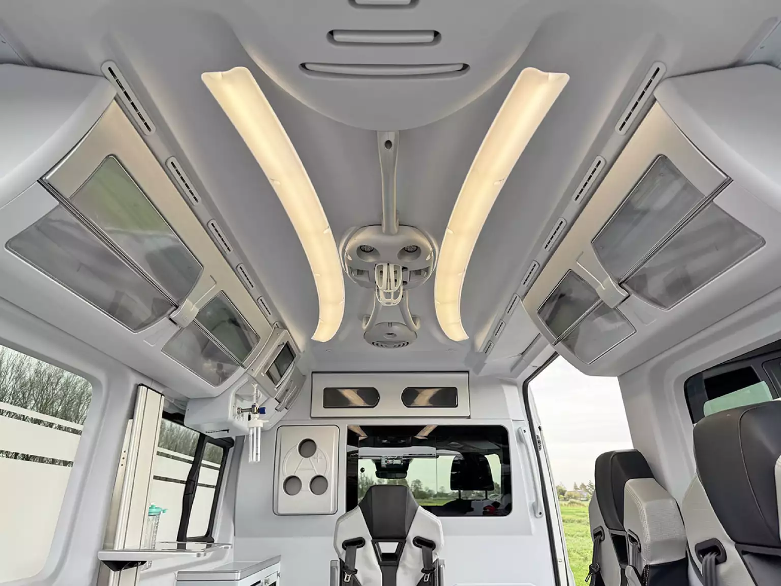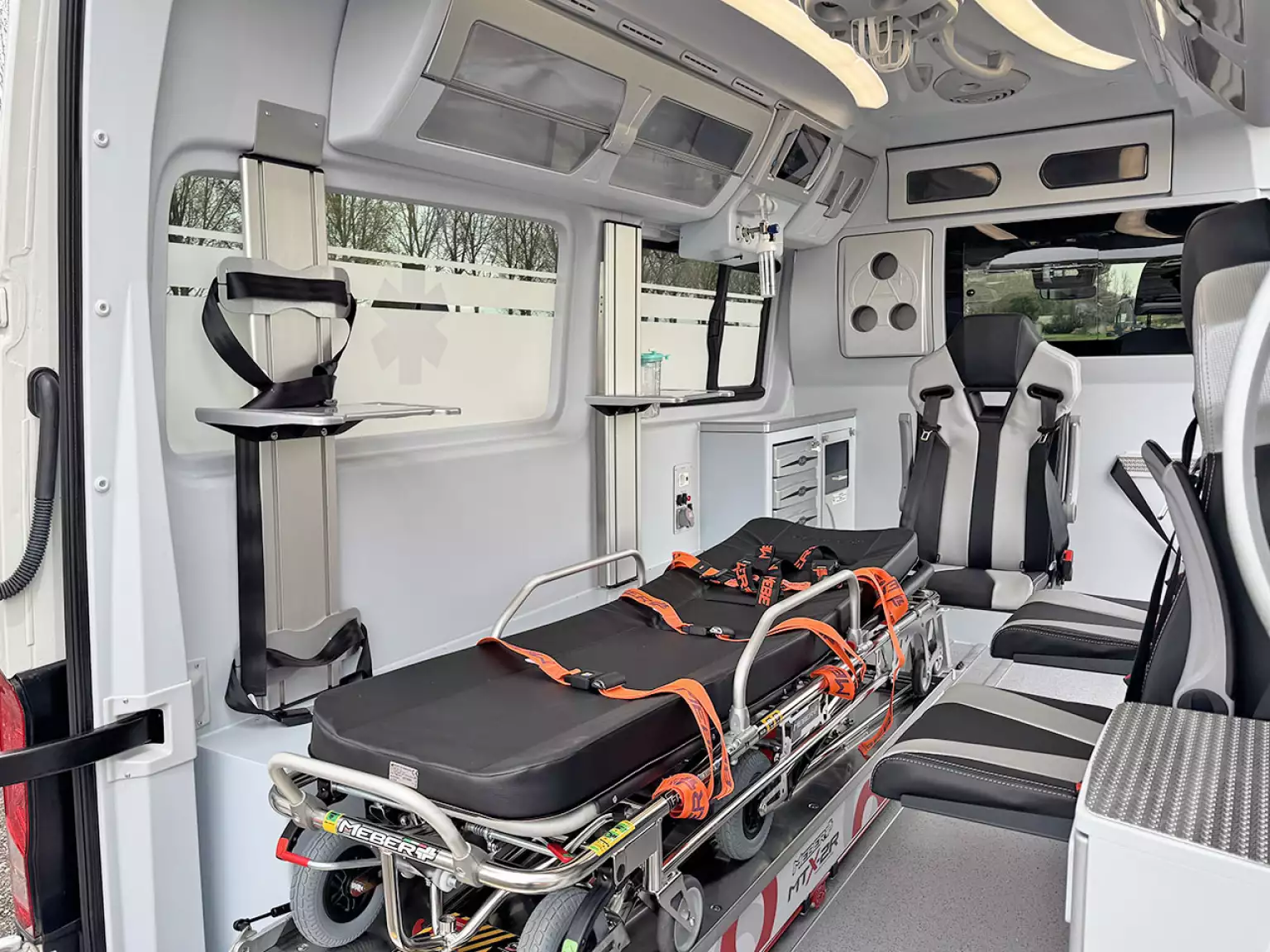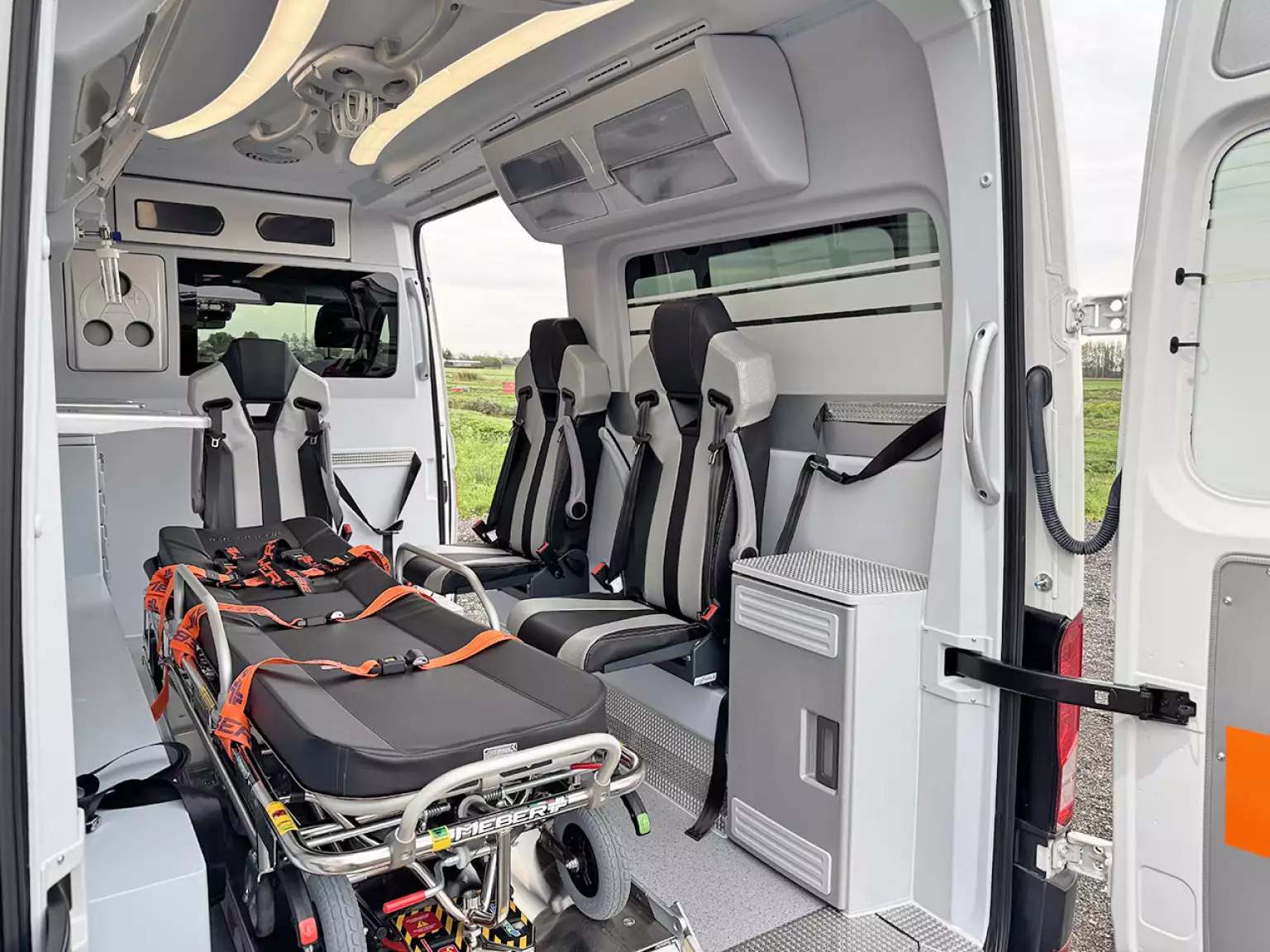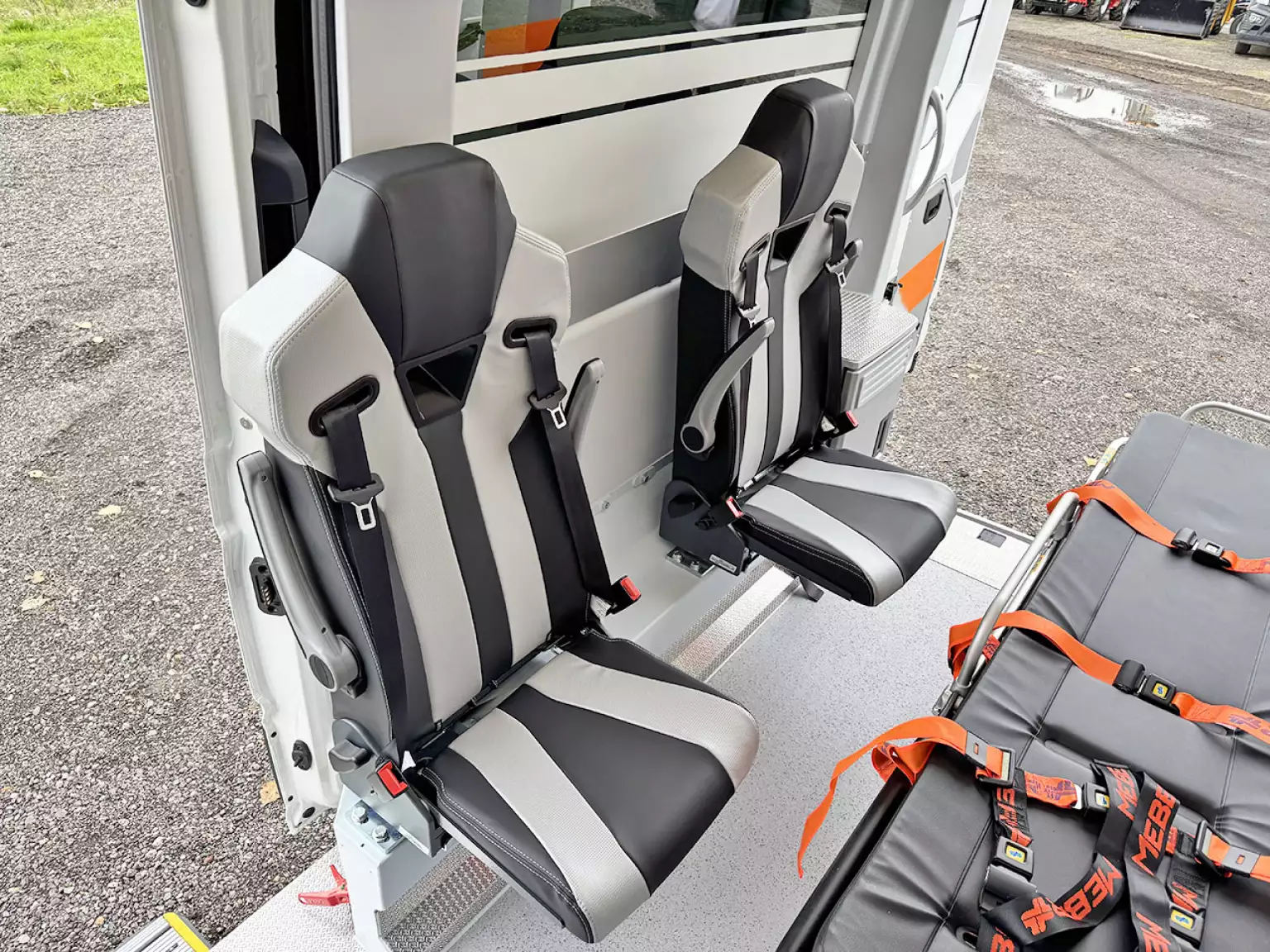 3 seats with seatbelts in ambulance