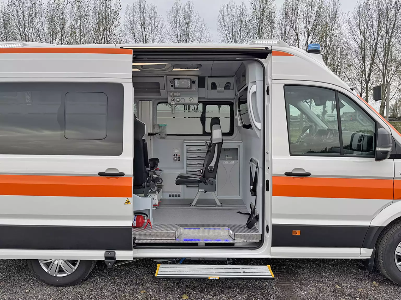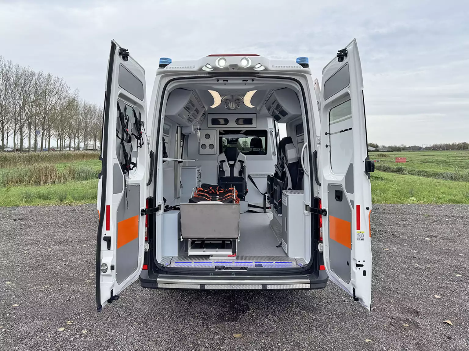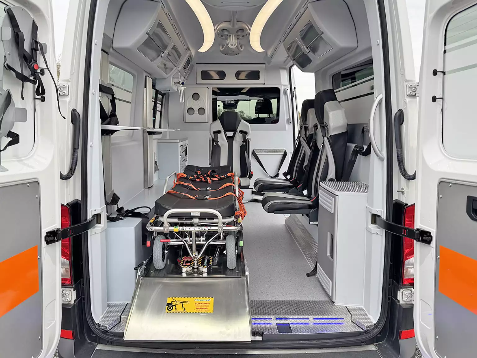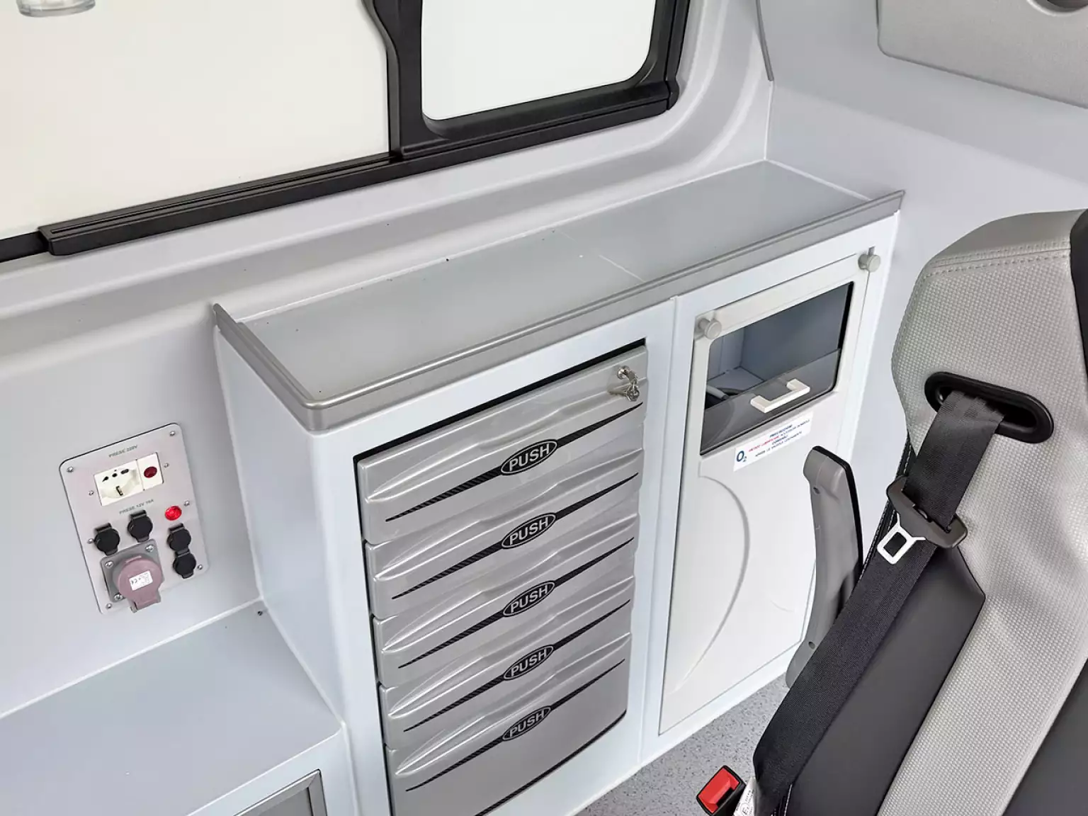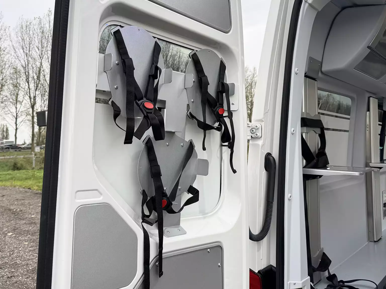 3 seats with seatbelts in ambulance